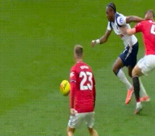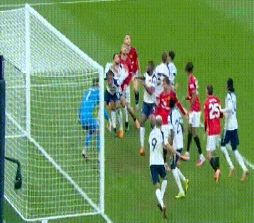 第91分钟,场上比分再度发生变化,热刺角球开进禁区,曼联解围,禁区外的热刺球员起脚远射,理查利森头球蹭进大门死角,拉门斯鞭长莫及,曼联1-2落后。
