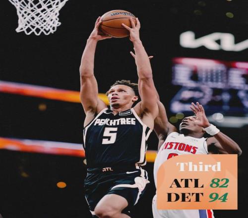 坎宁安前三节独得16+6+10,三分球5中0,老鹰的亚历山大-沃克三分也是5中0。三节打完,活塞94-82领先12分。第四节风云突变,老鹰一波14比2,比赛还剩7分钟,老鹰追到只差3分。亚历山大-沃克连得10分,奥孔武也爆发了!