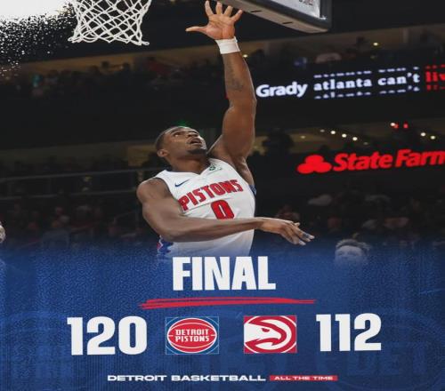 第四节活塞三分球只有8中1,依靠高强度防守和稳定的罚球,笑到了最后。全场结束,活塞120-112战胜老鹰,豪取11连胜。目前活塞13胜2负稳居东部第一,距离联盟第一的雷霆1.5个胜场。NBA变天了,多支年轻球队已经崛起!